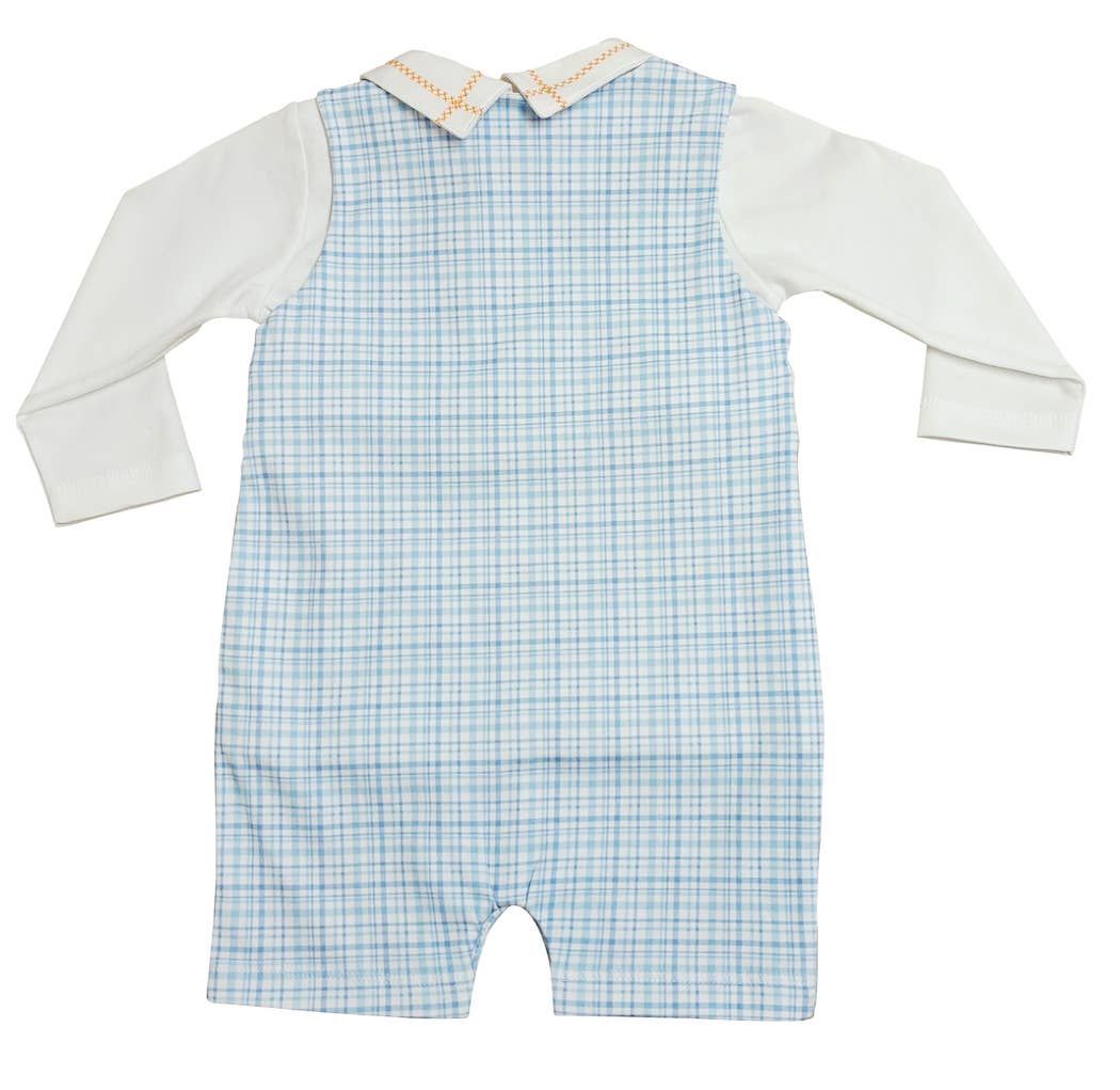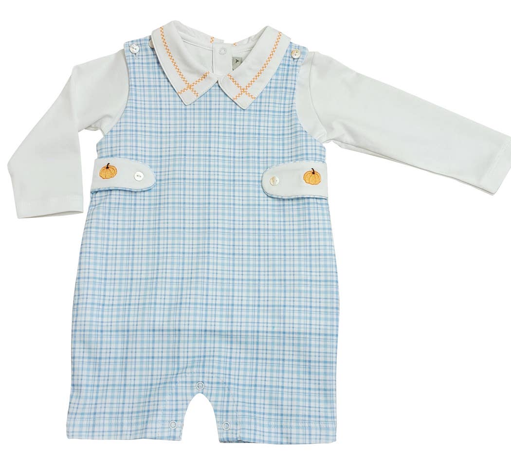 Fall Pumpkin Light Blue Plaid Pima Cotton Boy Shortall set