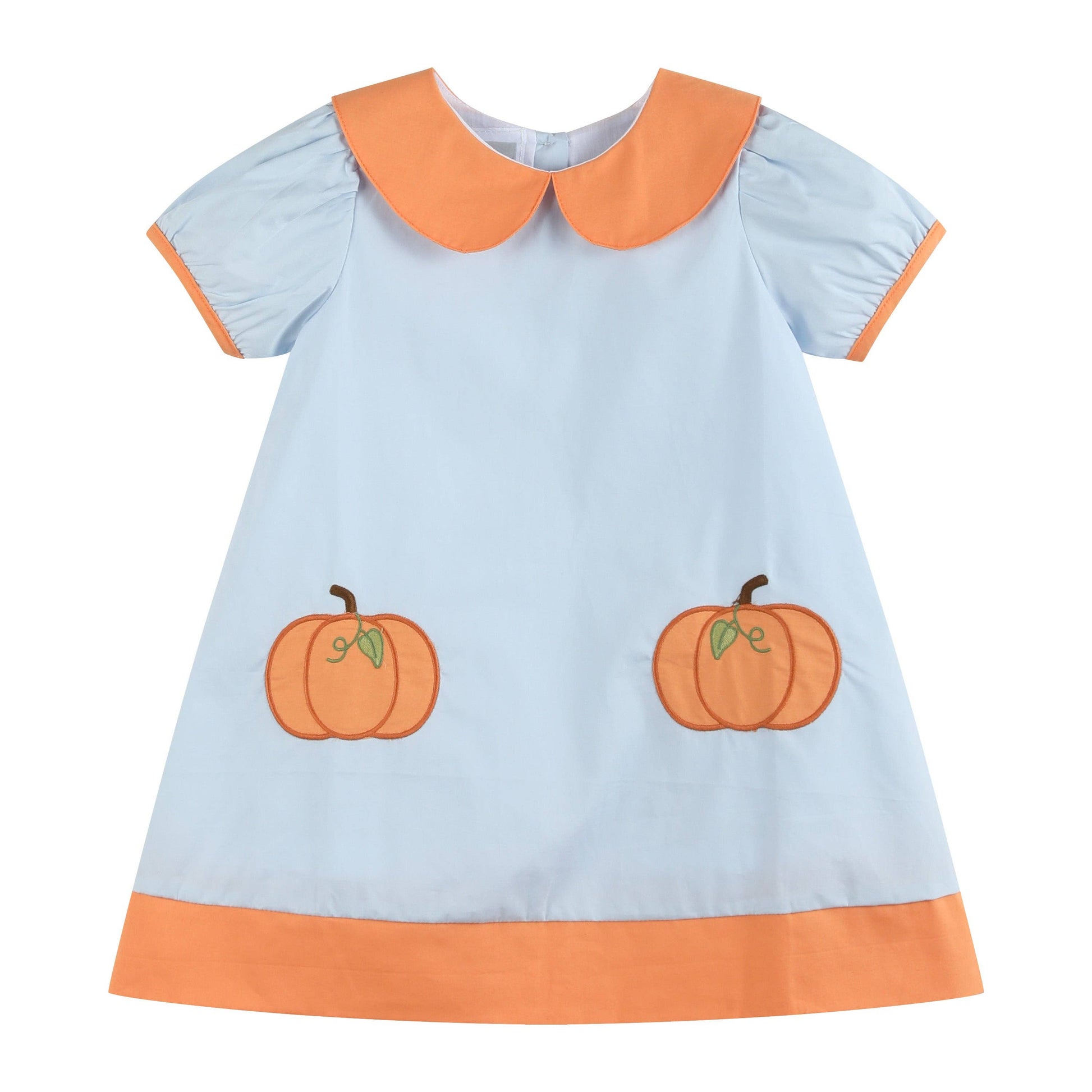 Light Blue Pumpkin Applique Collared Dress