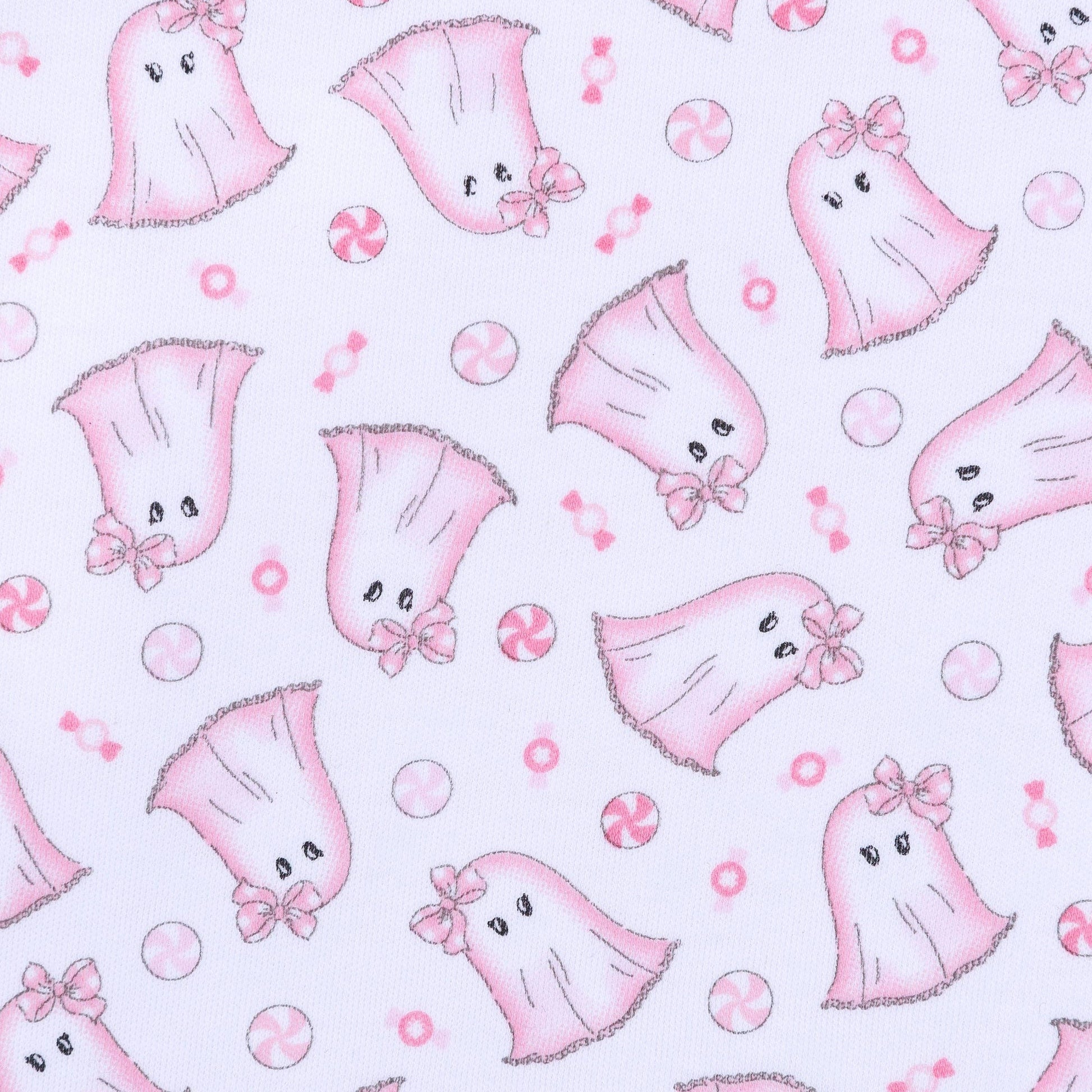 * All-Over Ghost Print: Features a charming all-over print of pink ghosts, adding an adorable touch to the design.