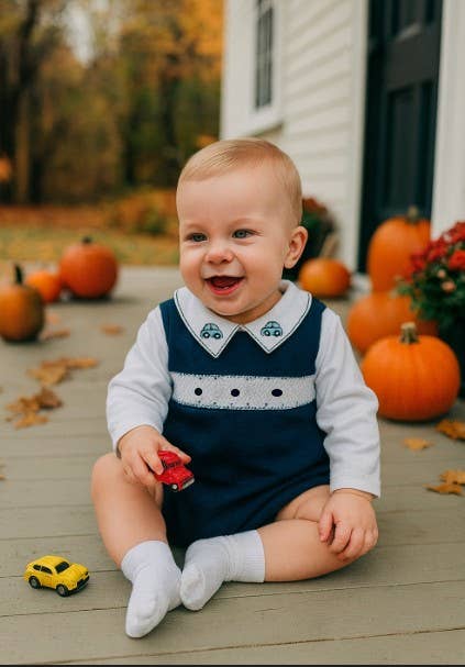 Romper smocked set Ariana and Drew Collection. 100% cotton. Made in El Salvador